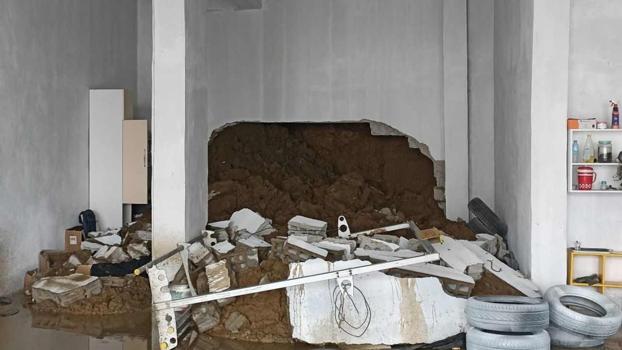 Heyelanla birlikte sürüklenen toprak yığını dükkanı tamamen kaplarken, iş yerinin ağır hasar aldığı ve kullanılamaz hale geldiği öğrenildi.