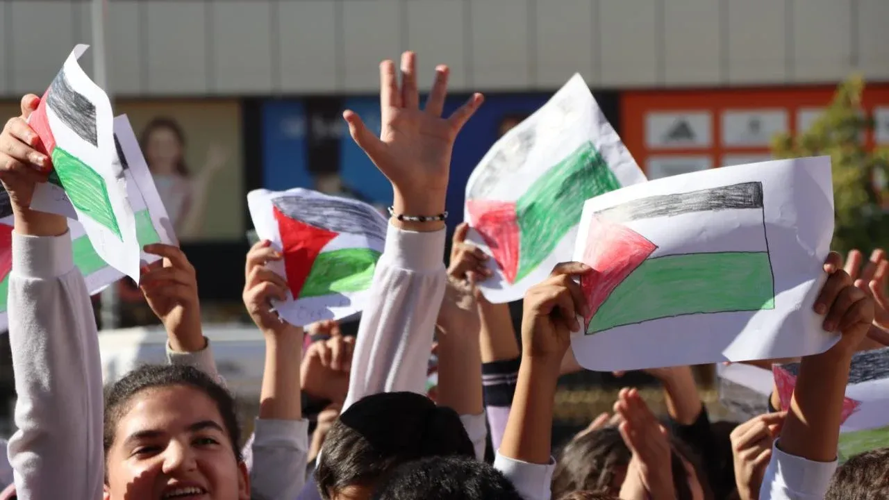 Van’ın Erciş ilçesinde bulunan Tenzile Ana İlk ve Ortaokulu öğrencileri, İsrail’in Gazze’ye yönelik saldırılarına tepki göstermek ve Filistin halkına destek olmak amacıyla anlamlı bir etkinlik düzenledi.