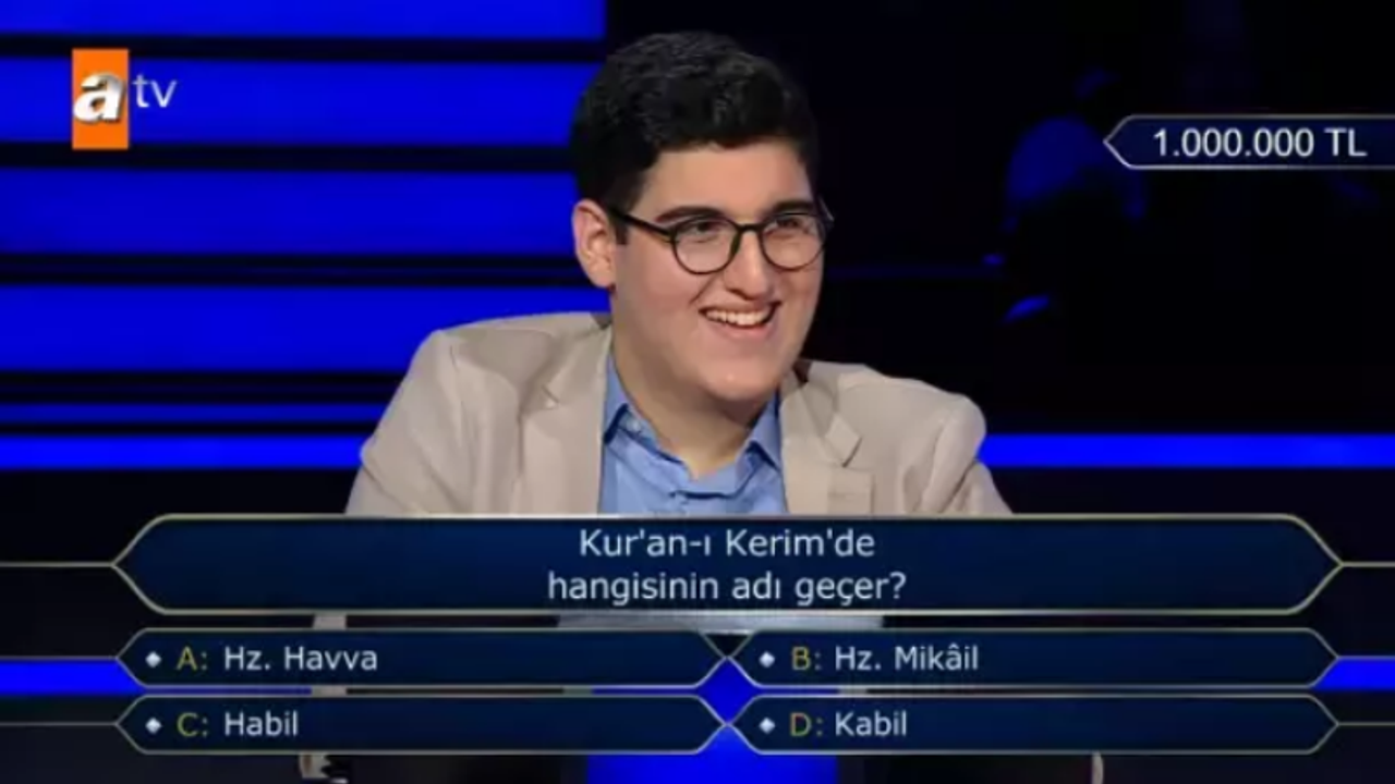 Kim Milyoner Olmak İster yarışmasındaki 'milyonluk' soru, izleyiciler tarafından merak ediliyor. Peki 1 milyonluk sorunun cevabı ne? Kur'an-ı Kerim'de hangisinin adı geçer? Doğru cevap B şıkkı Hz. Mikail mi?