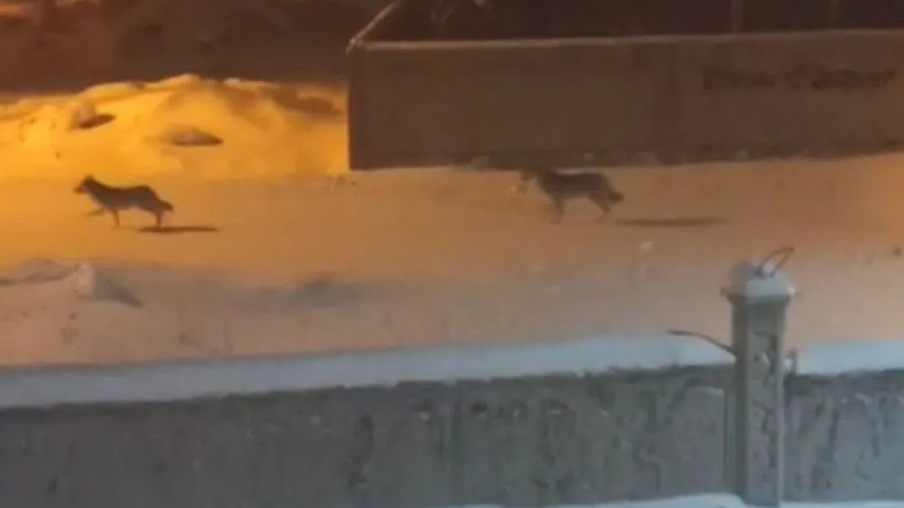 Van’ın Başkale ilçesinde etkisini artıran sert kış koşulları nedeniyle yiyecek bulmakta zorlanan kurtlar, gece saatlerinde mahalle aralarına kadar indi. O anlar yurttaşların cep telefonu kameralarına yansıdı.