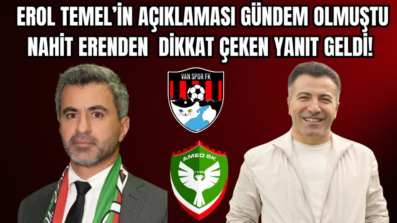 TFF 1. Lig’de oynanan Vanspor–Amedspor karşılaşmasının ardından kulüp başkanlarının açıklamaları gündem oldu. Vanspor Başkanı Erol Temel’in “Bizim bizden başka dostumuz yok” sözlerine Amedspor Başkanı Nahit Eren’den yanıt geldi.