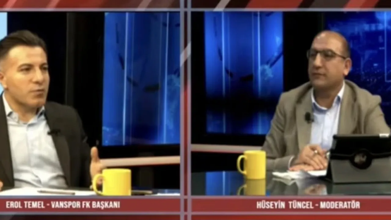 Vanspor FK Başkanı Erol Temel, Van65 TV’nin İstanbul stüdyosunda Hüseyin Tuncil’in sunduğu Memleket İsterim programına konuk oldu. Programda kulübün mevcut durumu, geleceğe dönük hedefleri ve Van futbolunun gelişimi hakkında önemli açıklamalarda bulunan Temel, birlik ve beraberliğin önemine vurgu yaptı.