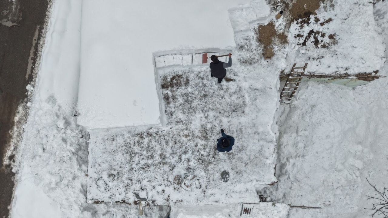 Karın ağırlığı nedeniyle çatılarda çökme riski oluşurken, mahalle sakinleri sabahın erken saatlerinden itibaren küreklerle dam temizliği yaptı. Vatandaşlar, olası çökmelerin önüne geçebilmek için büyük dikkatle karları çatıdan aşağı indirdi.
